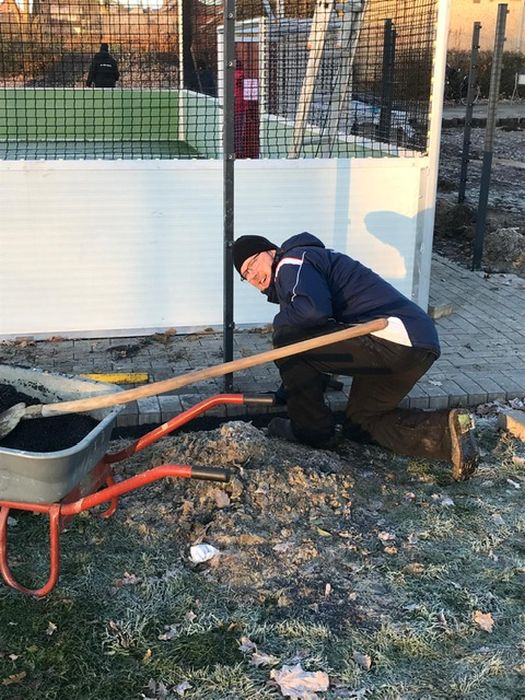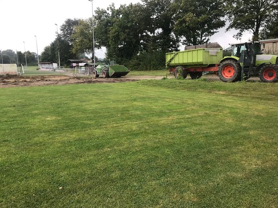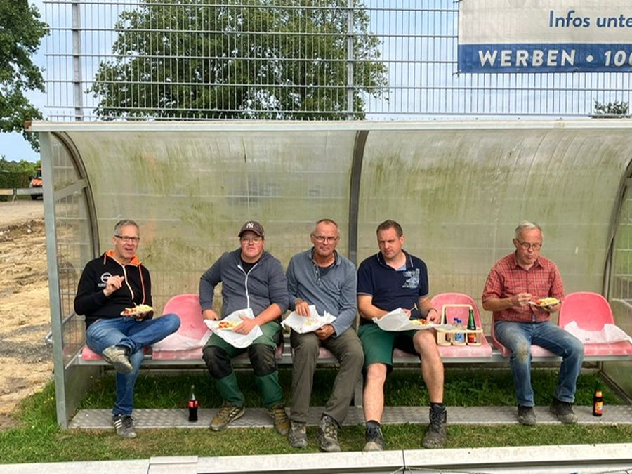 Von insgesamt 32 ehrenamtlich unterstützenden Sportkameraden der TuS-Fußballer wurden in insgesamt 59 erfassten Arbeitseinsätzen 908 Arbeitsstunden unentgeltlich eingebracht. Zusätzlich zu den vom Bauhof nutzbaren Gerätschaften kam noch der von den Sportfreunden Tono Isfort, Tim Hellenkamp und Bernhard Webers unentgeltlich bereitgestellte Maschinenpark (Trecker, Anhänger, Teleskoplader, Radlader, …), ohne dem die umfangreichen „Erdbewegungen“ nicht denkbar gewesen wären.